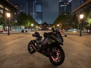 夜だとこの辺りも靜かで、手で押していくとバイクを置いて写真を撮ることができます。