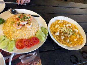 注文したのはタイ風のチャーハンと蟹肉の乗ったオムレツです。