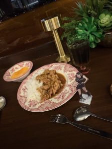 タイ風の鶏肉煮込みのような食べ物をご飯にかけてタイでの最後の食事になりました。